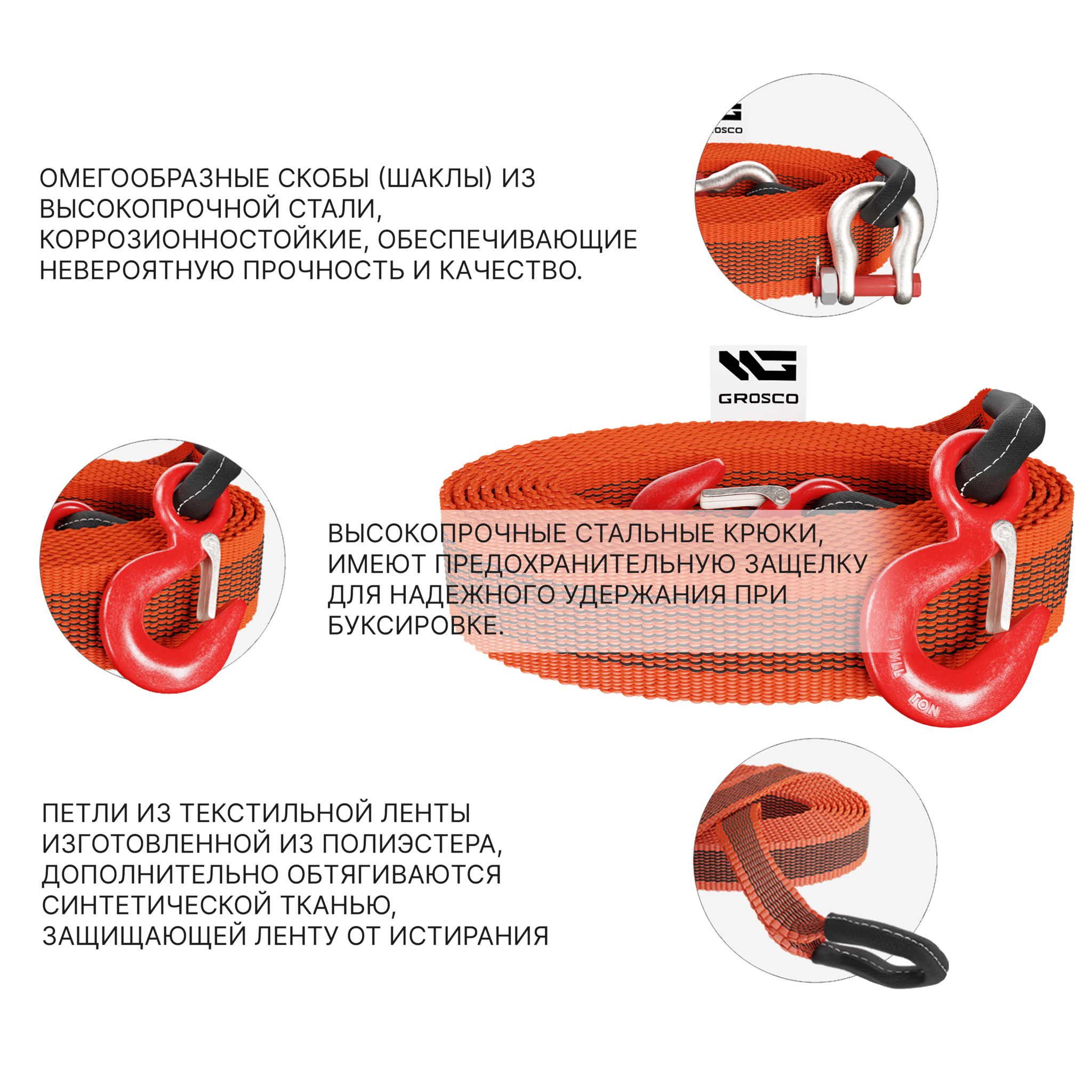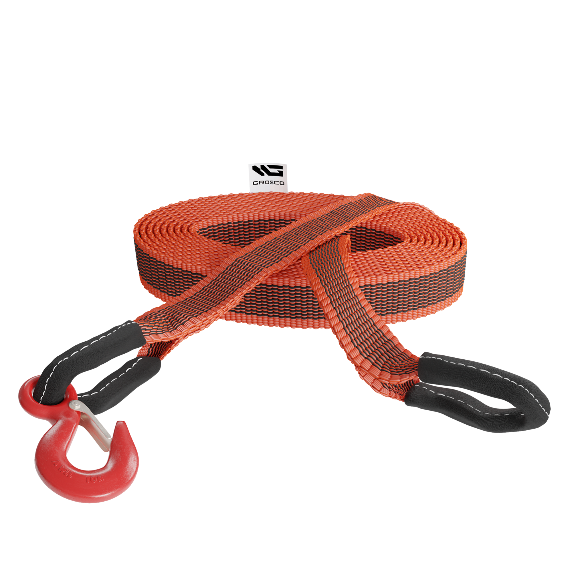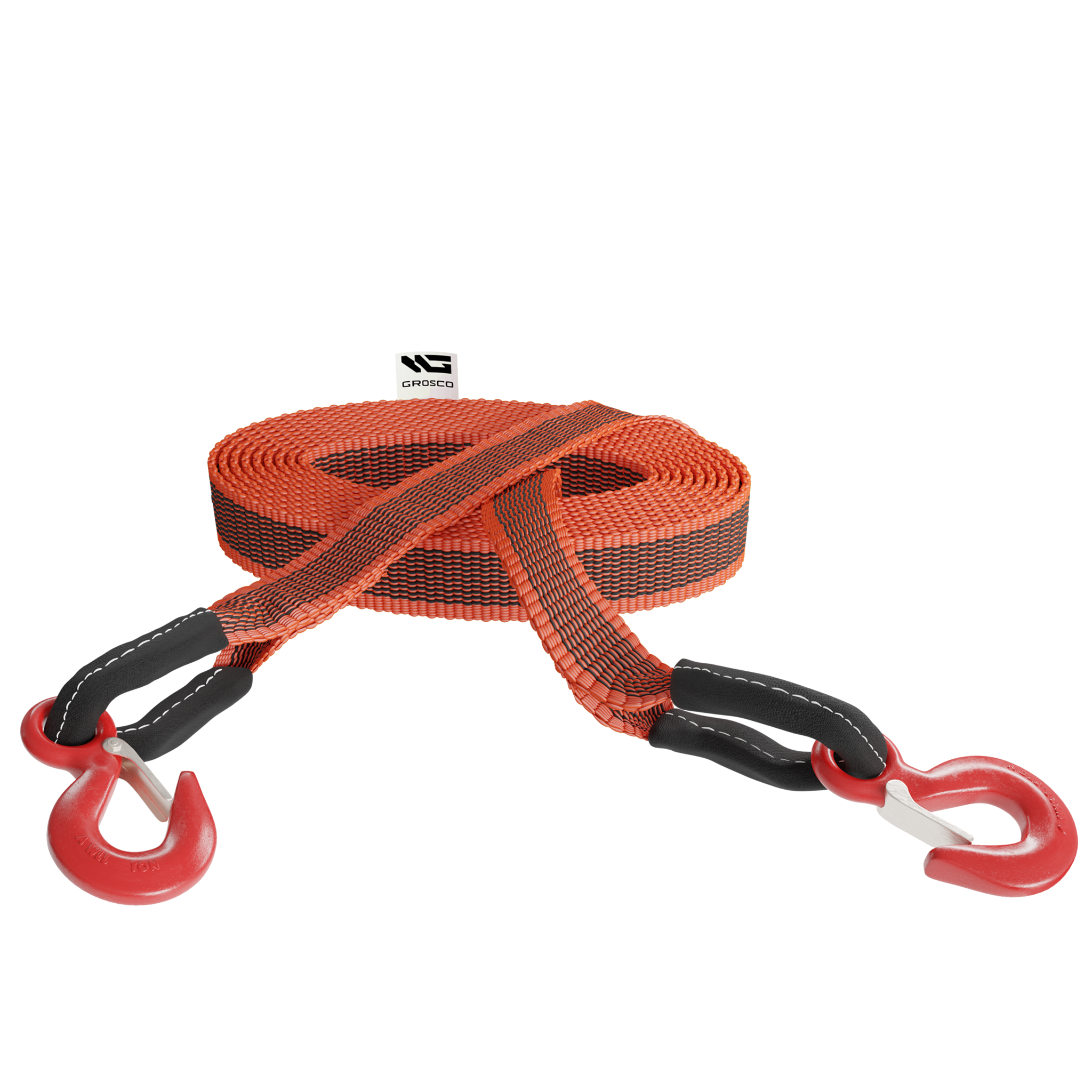 Буксировочный трос GROSCO отлично подходит для сложных условий эксплуатации. Устойчивый к атмосферным воздействиям трос не сжимается и не растягивается под дождем, снегом или льдом, что делает его долговечным инструментом для буксировки.