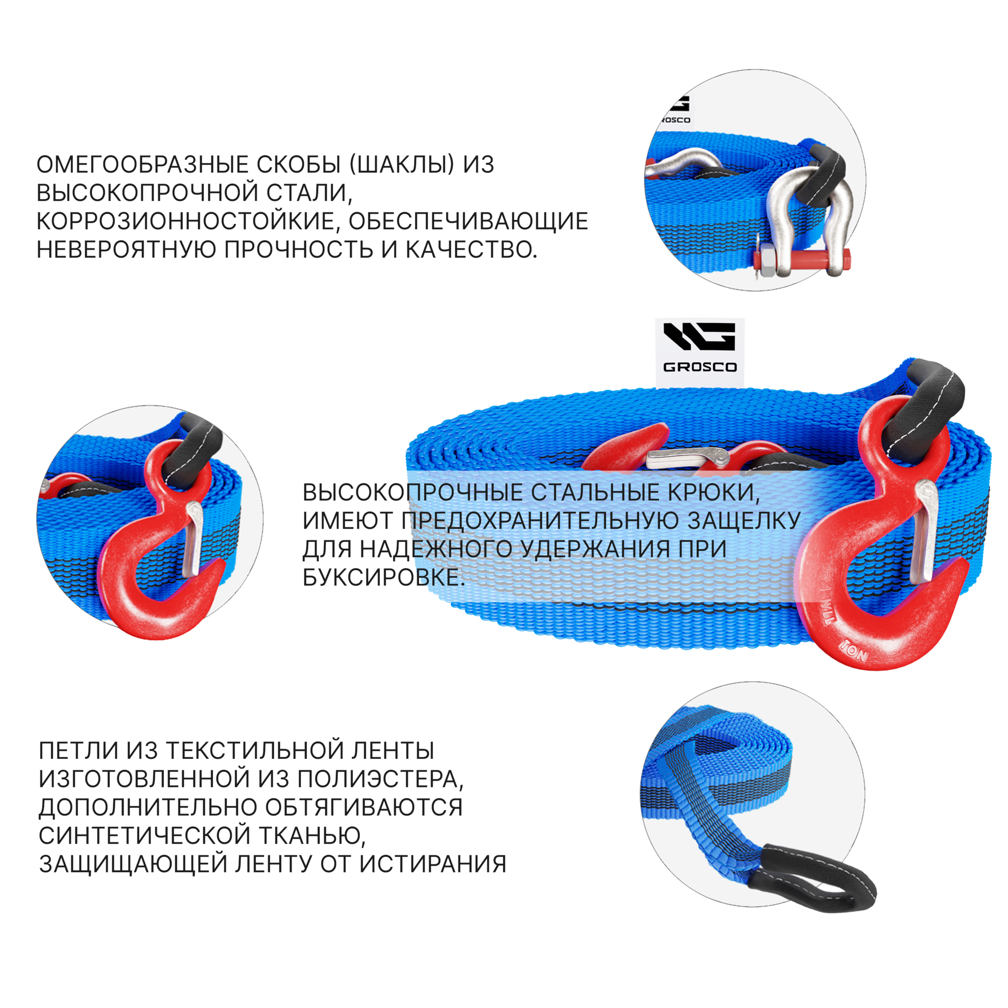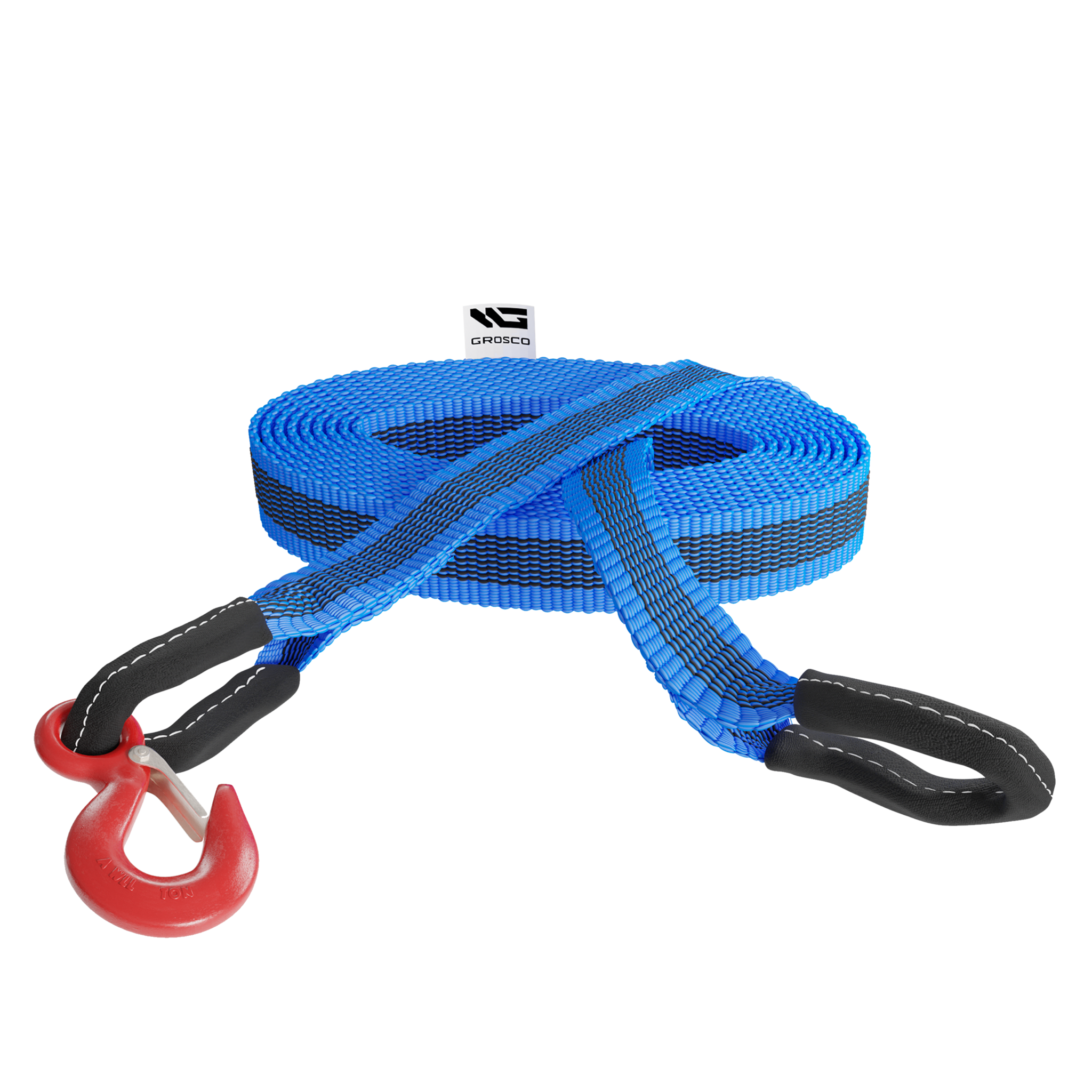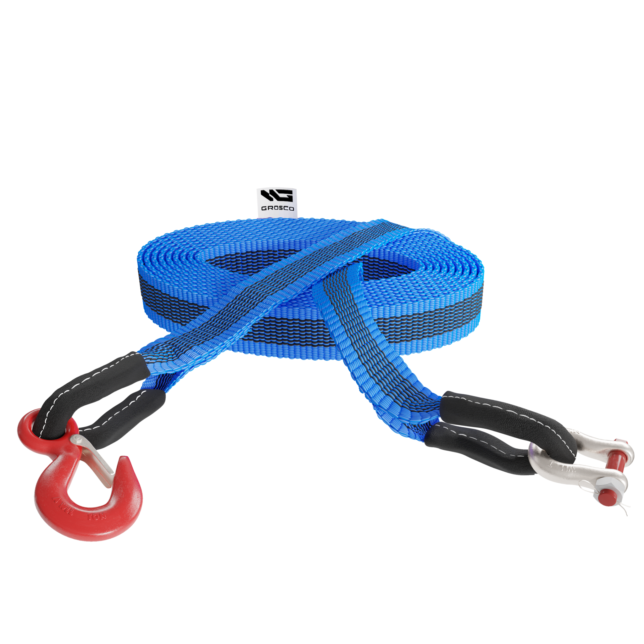 Буксировочный трос GROSCO отлично подходит для сложных условий эксплуатации. Устойчивый к атмосферным воздействиям трос не сжимается и не растягивается под дождем, снегом или льдом, что делает его долговечным инструментом для буксировки.